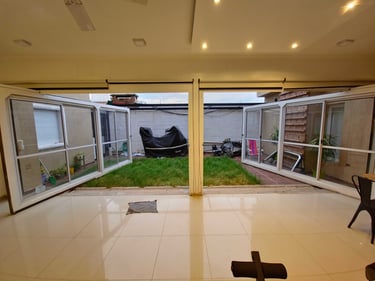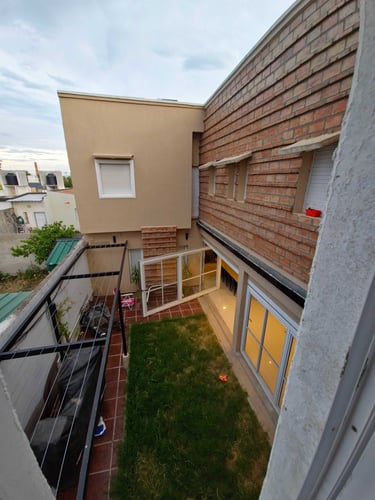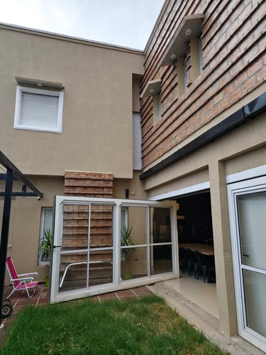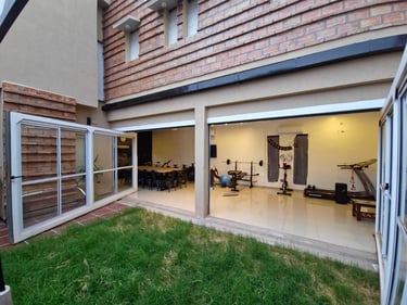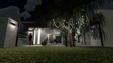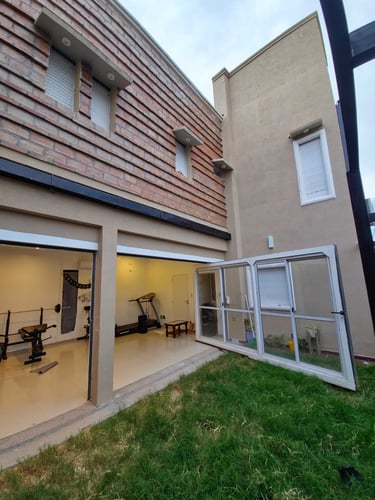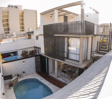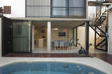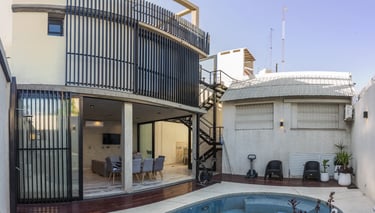Espacio social independiente en el fondo de la vivienda de tres plantas de 30 m2.