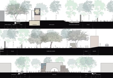 Este proyecto pone de protagonista al peatón, el verde y lo relaciona con las figuras de la memoria colectiva urbana.