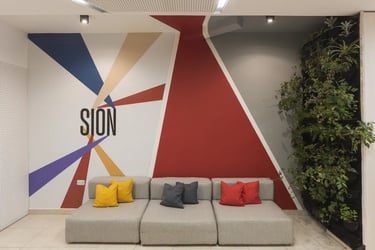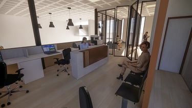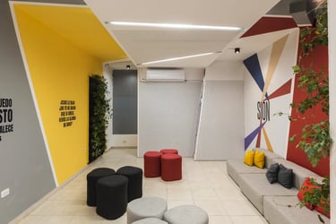 Diseño de interior y propuesta de espacio flexible para trabajo creativo de área de ventas.