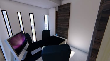Un despacho en contacto con el área social de la vivienda. Ampliación de dormitorios desarrollado en dos plantas.