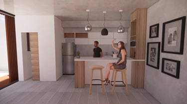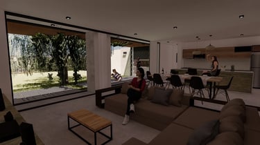 Configuración para una convivencia entre espacios privado-público dentro de la vivienda.